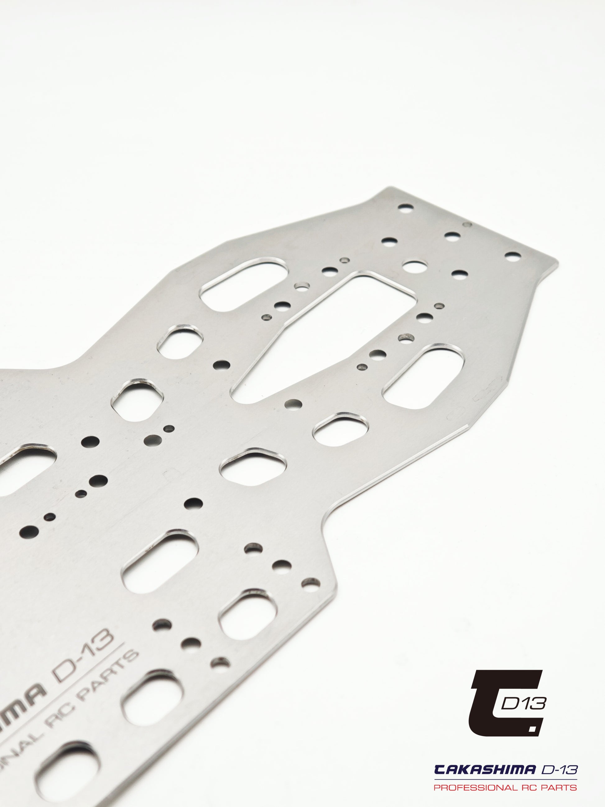 Takashima D-13 has a new product line coming in the range of Steel Chassis for 1:10 Touring Car. The Takashima D-13 product features superior quality and finish. In collaboration with a full-scale automotive machining factory team, they have selected a special Spring steel that offers an optimal balance of strength and durability. The chassis features ultra-flat precision grinding with nanometer-level accuracy and a mirror-finish surface treatment for exceptional performance and consistency. Designed to be used with 120-degree flat head screws, it no longer requires special custom screws, greatly improving cost efficiency and ease of availability.