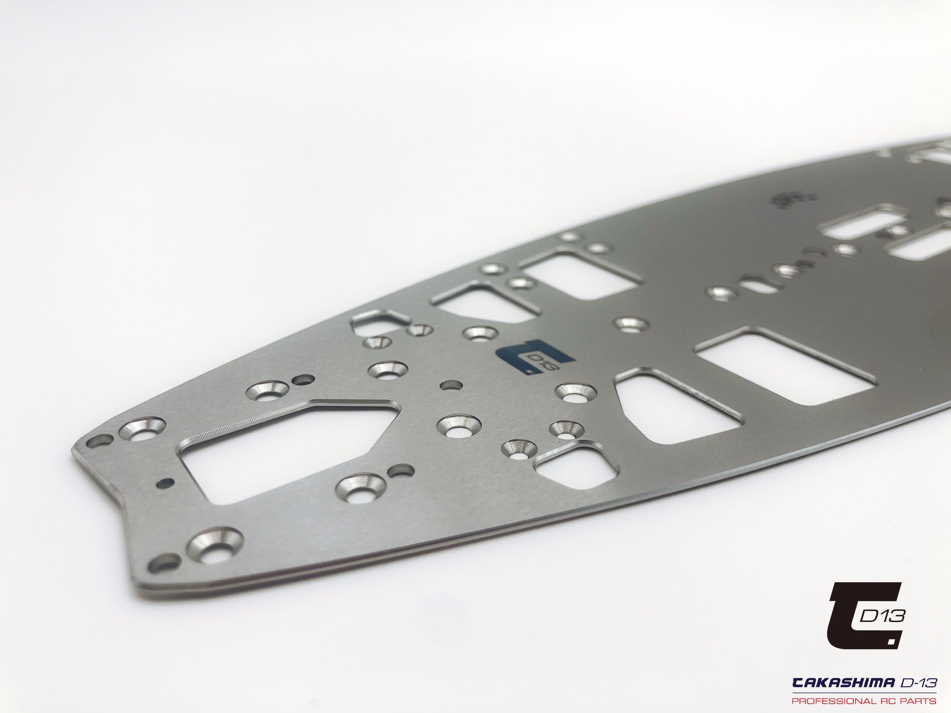 Takashima D-13 has a new product line coming in the range of Steel Chassis for 1:10 Touring Car. The Takashima D-13 product features superior quality and finish. In collaboration with a full-scale automotive machining factory team, they have selected a special Spring steel that offers an optimal balance of strength and durability. The chassis features ultra-flat precision grinding with nanometer-level accuracy and a mirror-finish surface treatment for exceptional performance and consistency. Designed to be used with 120-degree flat head screws, it no longer requires special custom screws, greatly improving cost efficiency and ease of availability.